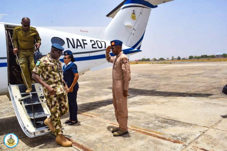 "YOUR SACRIFICES ARE ETCHED IN OUR NATION’S HISTORY" — CAS COMMENDS TROOPS IN MAIDUGURI In a stirring tribute to the Nigerian Air Force personnel combating insurgency in the North-East, the Chief of the Air Staff (CAS), Air Marshal Hasan Bala Abubakar, lauded the courage and commitment of troops during a morale-boosting visit to the Air Component of Operation HADIN KAI…